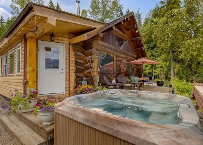 Authentic Lofted Log Cabin With Hot Tub Villa is equipped with a microwave, a refrigerator, and kitchenware for self-catering in an outdoor dining area and a dining place. Guests can also take advantage of tea and coffee-making facilities during their stay. Guests can easily reach Kelowna International airport, which is a 42-minute drive from the 1-bedroom Authentic Lofted Log Cabin With Hot Tub Villa Kelowna.